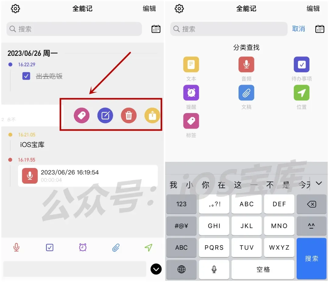 比如音频、照片、文字、重要事项等等