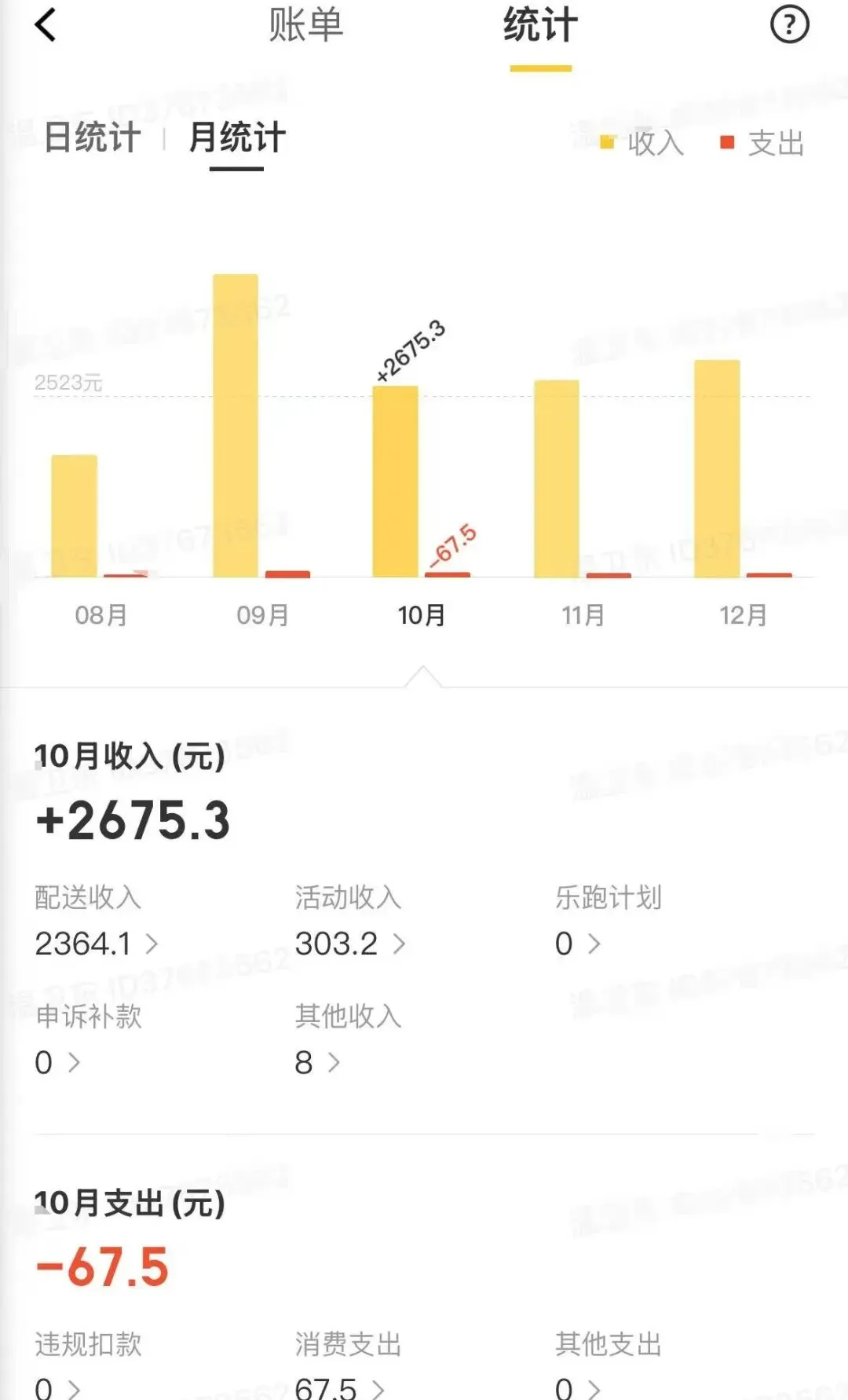 我来说下我从8月到目前的一个收入,8月1710,9月4238,10月2675,11月2761,12月3044,1月目前是707。