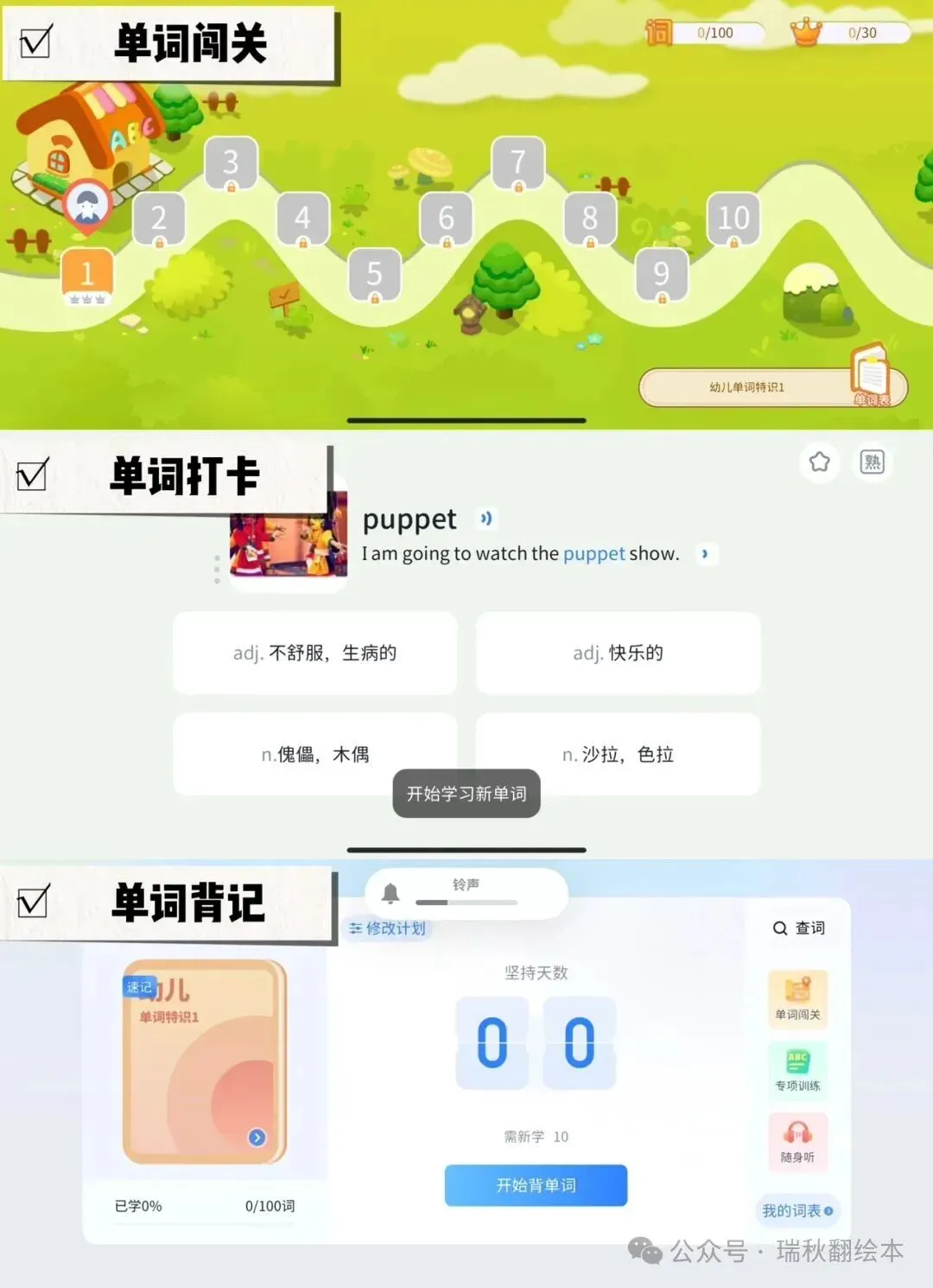 – 趣味闯关:每个单词单元都设计成游戏关卡,通过才能进入下一关