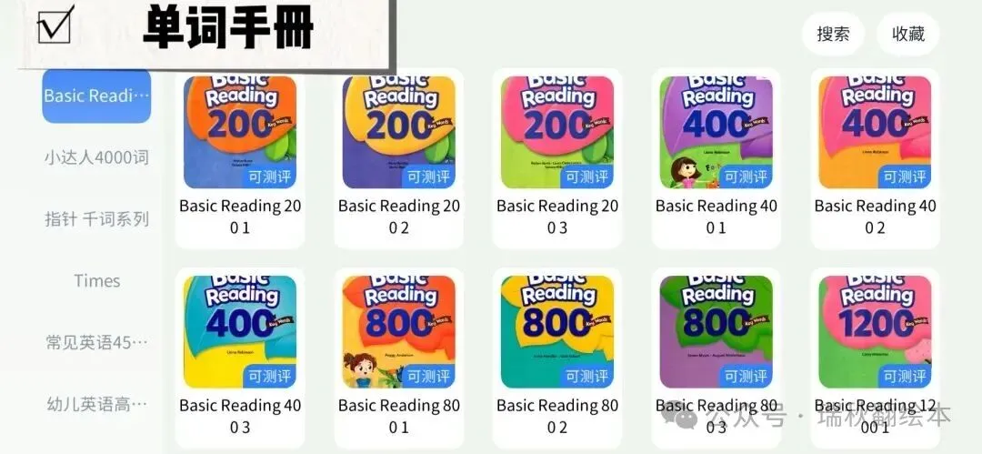 1000词,2000词,4000词,basic reading,必会4000词,First English Words,常见英语4500词,幼儿英语高频词,培生词汇,学乐词汇系列,香港小学英语写作3000词,洪恩儿童英语1000词,神奇的腾斯,语音音标系列等等
