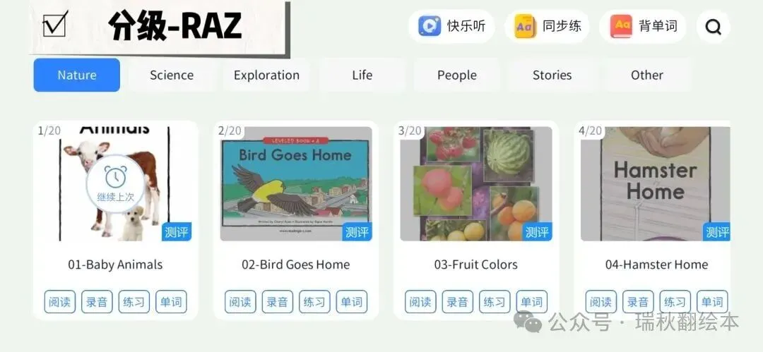 「Rachel伴学宝」根据难度分级整理了数千个优质英语视频,从启蒙阶段的动画片到进阶阶段的科普纪录片,内容涵盖故事、科学、历史、艺术等多个领域。每个视频都配有双语字幕,孩子可以根据自己的水平和兴趣选择适合的内容,在真实语境中习得地道表达。