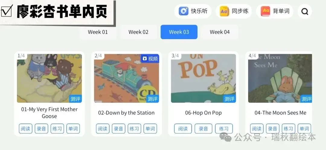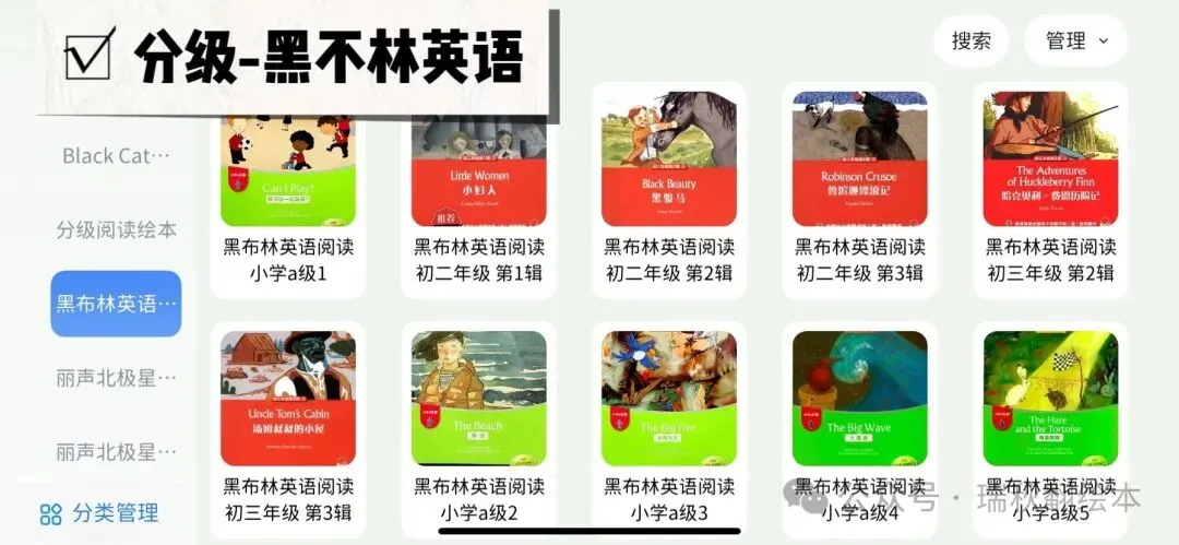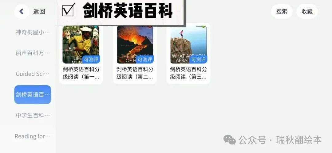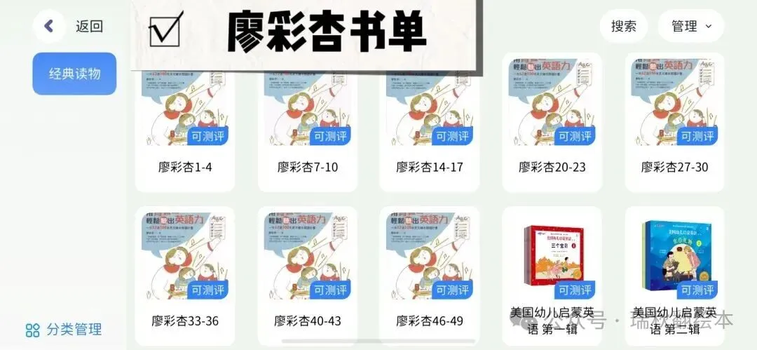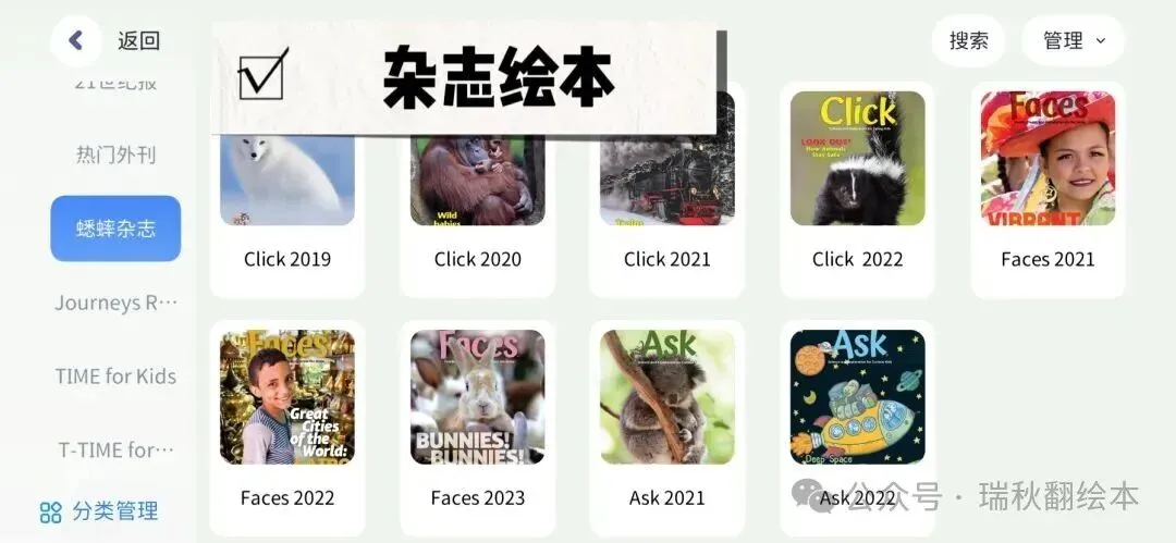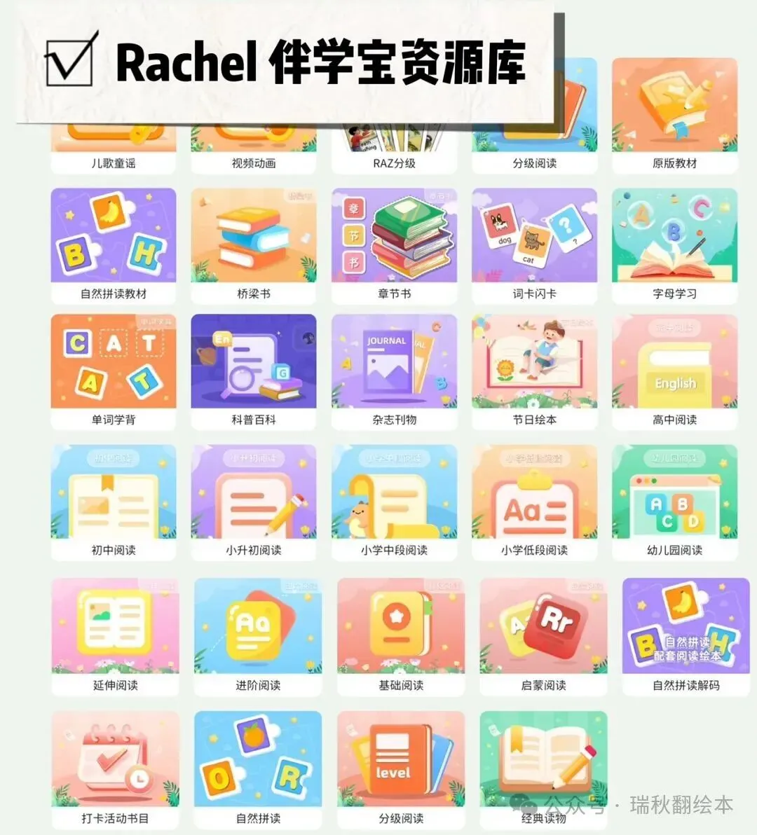 从儿歌动画-主题分类绘本-分级阅读-自然拼读-高频词-词汇营-桥梁书-原版教材-章节书-科普百科-期刊杂志~集齐0-15岁一站式英语学习资源……真的是超好用超省心的资源宝库(更多资源展示见文末附录)