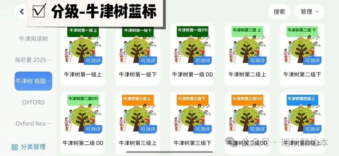 牛津树家庭版,牛津树学校版,RAZ,海尼曼gk/g1/g2,红火箭,兰登,培生,I can read, 典范英语,多维阅读,大猫分级,First little readers, Little fox, One story a day, Move up Stories, 攀登英语,丽声北极星,黑猫分级阅读,主题式启蒙分级绘本,黑布林分级阅读,丽声指南针系列,美丽的英文分级,悠游阅读,体验英语,新魔法英语分级,甜心英语,学乐指导性阅读,加州分级,阳光阅读等等
