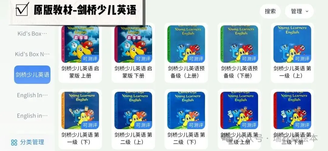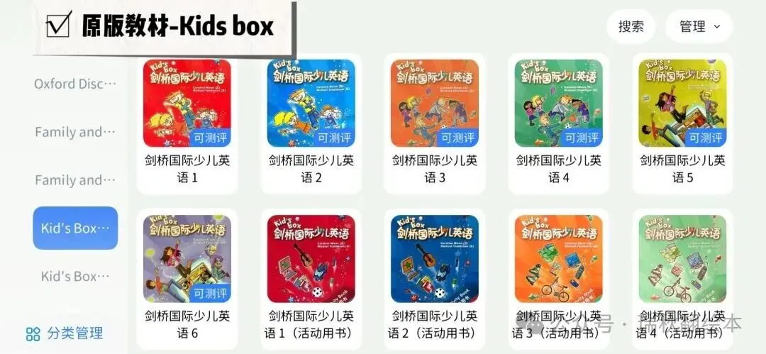新概念,剑桥少儿英语,Oxford Discover,Power Up,Reading Explor, Think,Guess What,Great writing,Let’s go, wonders, Super minds,Wonderskills,unlock全系列,美国幼儿,New grammar time,Look, All together, Wonderful World,side by side,Family and friend,Starlight, Timezone, Longman。