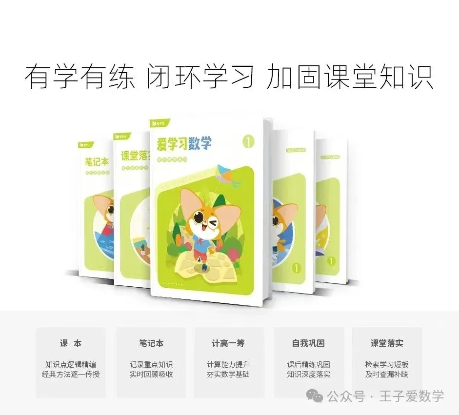 王子老师学生使用正版爱学习教材:分层教学,有趣形象,搭梯子法,循序渐进,同步拓展,举一反三。注重数学思维培养,快速提升学生多元思维能力。