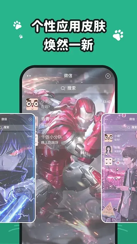 应用皮肤同样easy:在壁纸界面点下方“应用皮肤”,选设微信皮肤还是QQ皮肤,确认后点“设为皮肤”就搞定~全程不用动脑,点几下秒上手,从壁纸到动画再到皮肤,这软件把手机美化玩得明明白白,颜控直接冲!