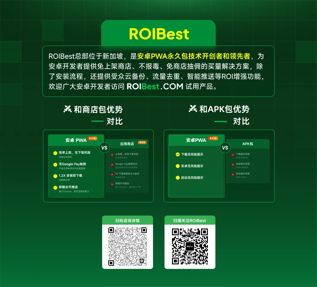 当玩法升级,分发方式升级变得刚需,而 ROIBest 的PWA 技术结合,为出海团队提供了这一能力,让下一轮出海竞争不只是创意的比拼,更是速度与覆盖的比拼。