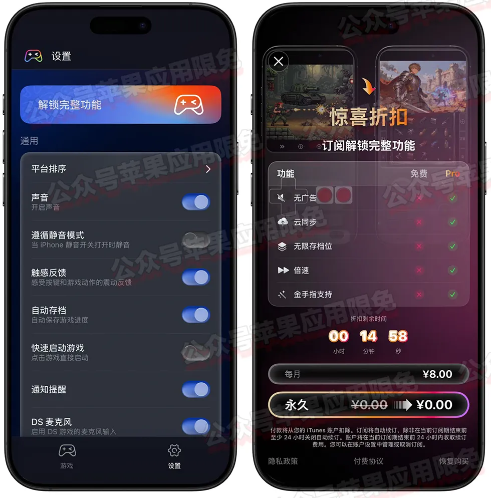 一款游戏模拟器,目前可以免费获取它的终身订阅,打开软件导入一个游戏文件,从设置进入内购,显示0即可免费获取,安装需要设备系统为iOS 16 或更高版本,更多详情可以看这里:速收!!游戏模拟器!终身订阅