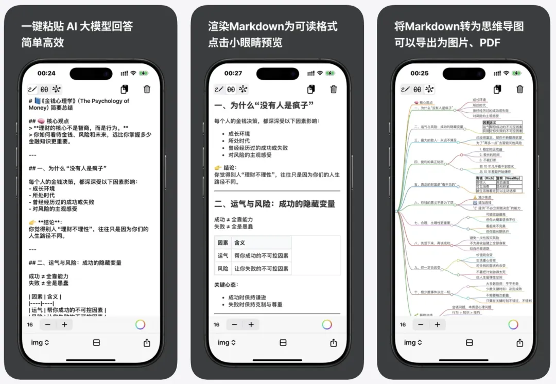 简介:一款AI长文本一键转图片、思维导图、PDF工具。