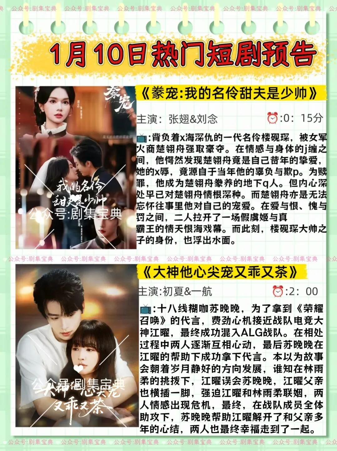 1月10日高质量短剧推荐!