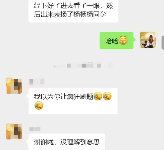 由于对信息理解有点出入,我重复了两遍,家长误以为我让孩子“疯狂刷题”的故事。让群里小伙伴开心乐呵了一阵子。