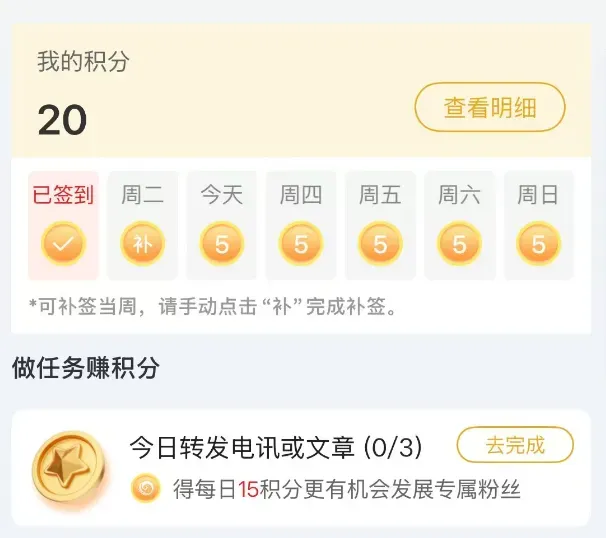 3. 日常分享:社交 + 积分,双重收获即便暂时没有好友注册,通过分享文章到社交平台仍能获得积分。