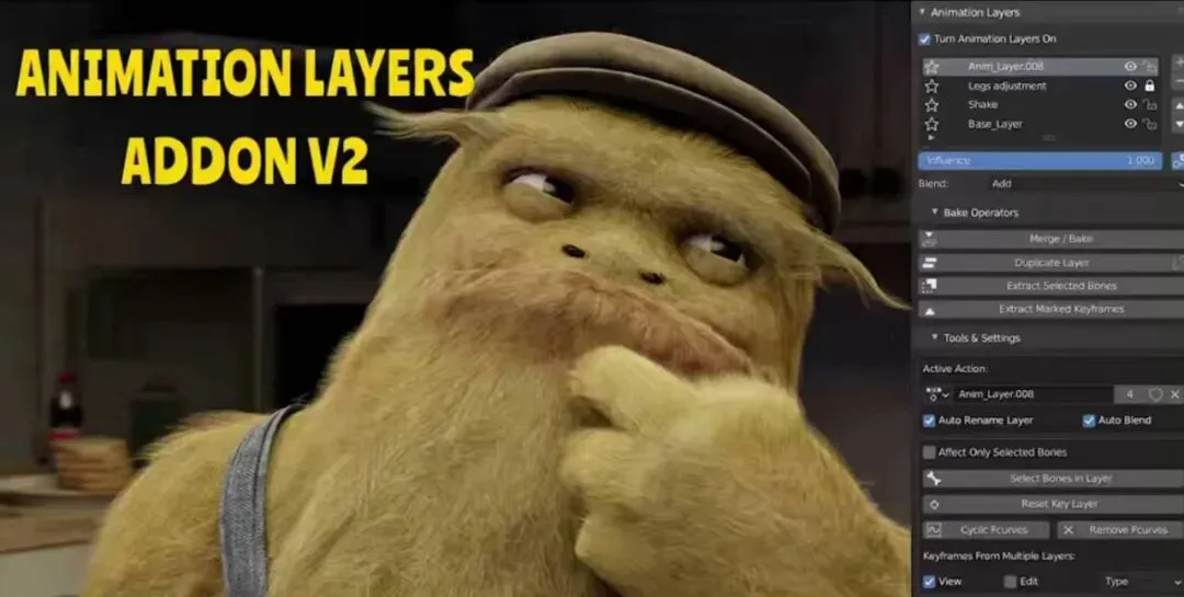 ℹ️ 这是一个插件,简化了NLA编辑器的使用,使其回归到标准的动画层工作流程。您可以快速创建、选择和编辑每个动画层,并且在处理任何层时始终能看到最终效果。