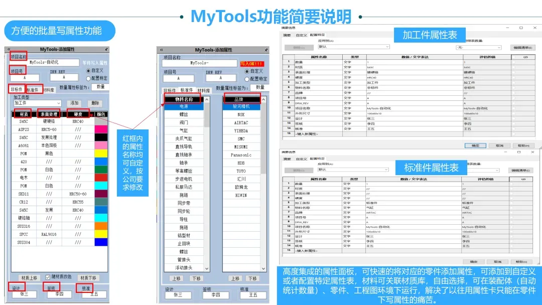 方便的批量写属性功能,解决了以往用属性卡只能在零件下写属性的痛苦。