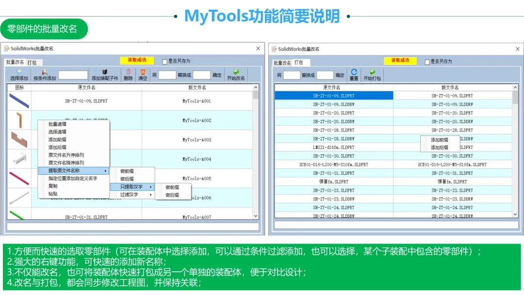 零部件的批量改名功能