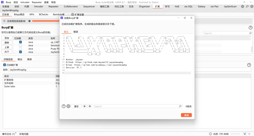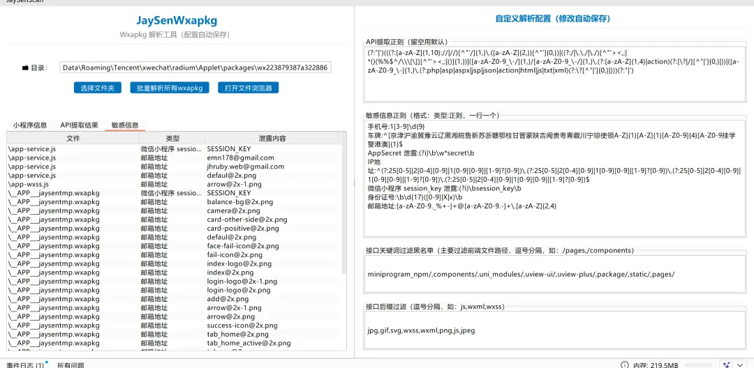 以前老版本的微信很多师傅都登不上了,目前市面上也好像没有针对微信新版本的小程序反编译解包并提取敏感信息的插件,jaysenwxapkg 就是一款为了解决此问题而基于burp api 2025.8开发的插件