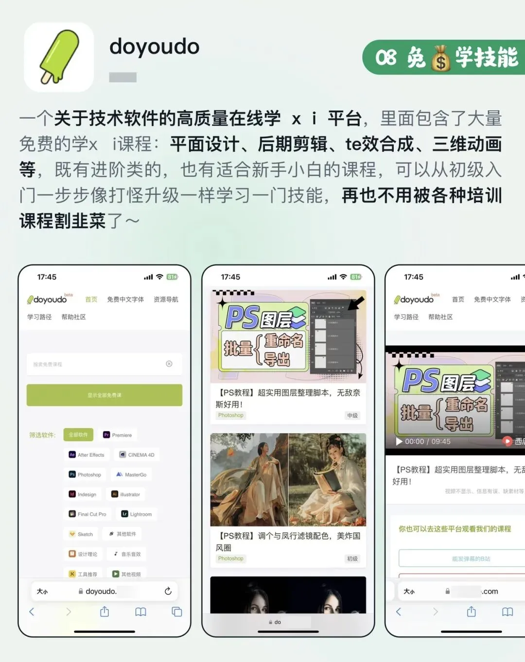 🟠一个关于技术软件的高质量在线学 ×i平台,里面包含了大量免费的学xi课程:平面设计、后期剪辑、te效合成、三维动画等,既有进阶类的,也有适合新手小白的课程,可以从初级入门一步步像打怪升级一样学习一门技能,再也不用被各种培训课程割韭菜了~