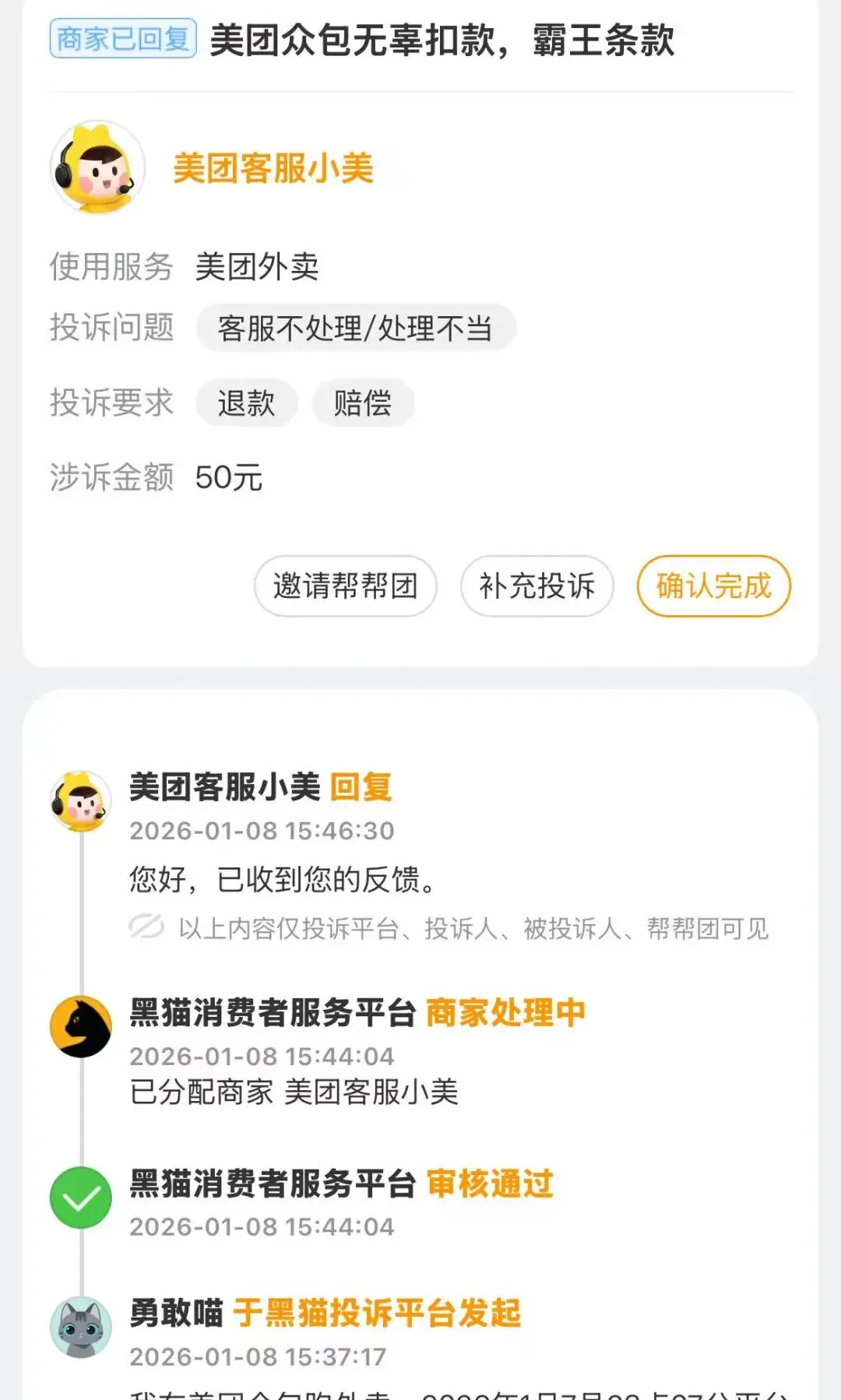 那我来就上次扣我50元这个事情,详细说一下过程和结果。