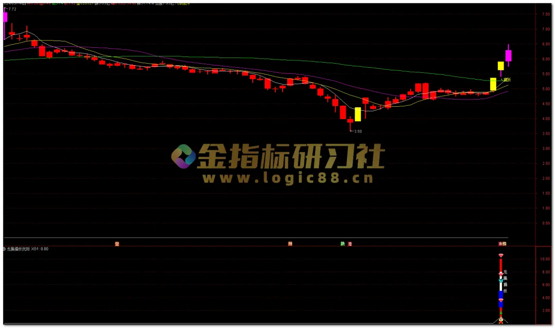 条件 :股票沿着5日线(MA5)上涨,突然一天收阴线洗盘。操作 :次日如果指标发出信号,且股价迅速吃掉昨天的阴线实体,这是典型的“反包”战法,胜率极高。