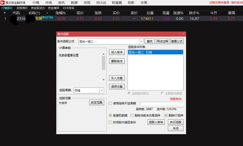 龙光一进二,竞价选股(指标源码)