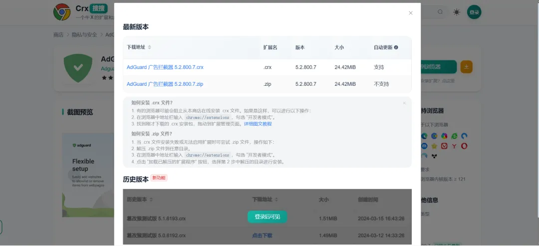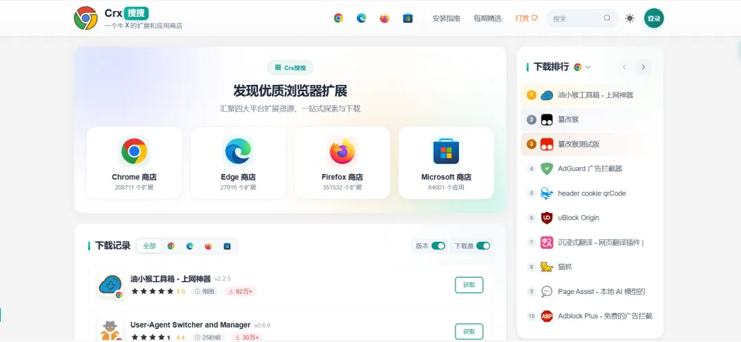 因为最近打算介绍几个好用的视频嗅探浏览器插件,而浏览器插件大多会支持 Chrome、Edge 和 Firefox 浏览器。对于大多数国产浏览器而言,大多基于 Chrome 内核开发,也就是说,适用于 Chrome 浏览器的插件能直接在国产浏览器上进行安装。但不幸的的是,国内一般无法直接访问 Chrome 应用商店,因此若想下载 对应插件,要么使用科学上网,要么使用网盘转存资源。不管哪种方式,都不是那么完美。因此我打算推荐几个国内便能直接访问的第三方浏览器插件网站。