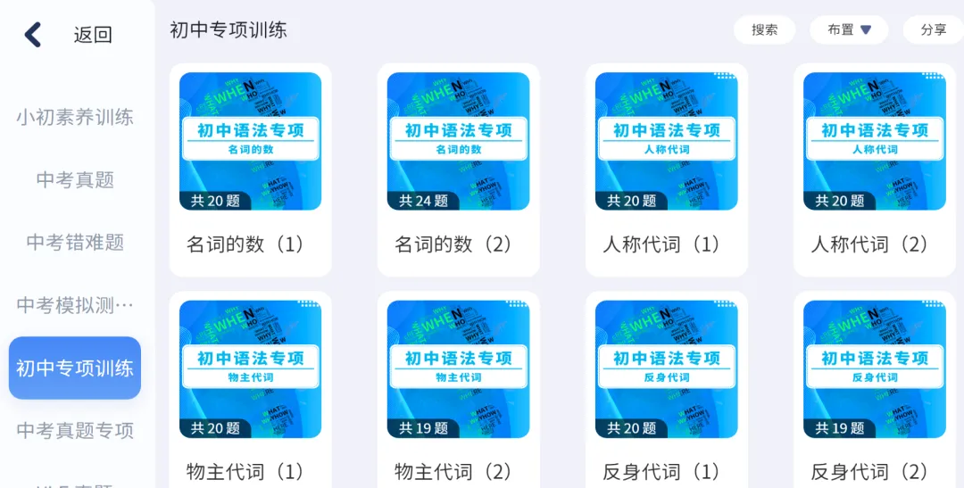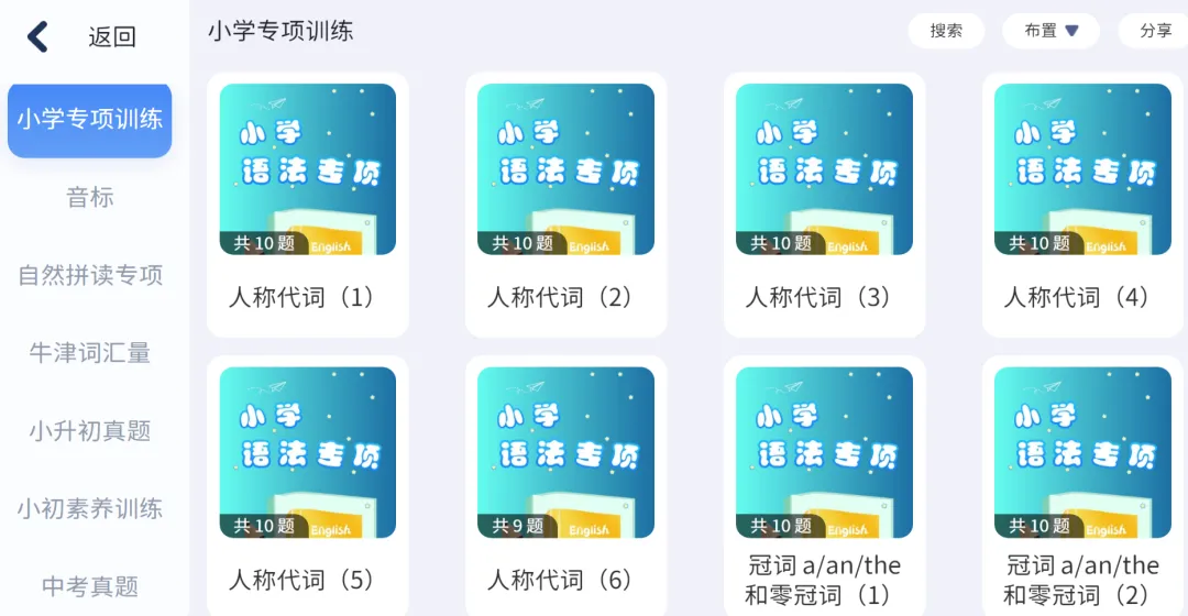 除了教材同步测试题,APP 还为各学段、各考试类型配备了专属专项训练。小学的词汇、语法启蒙,初中的完形、阅读提升,高中的写作、听力冲刺,以及四六级的解题技巧、雅思托福的实战演练、考研英语的重难点突破,都能在 APP 里找到对应的专项内容。孩子哪里薄弱练哪里,提分更高效;家长有提升需求也能同步使用,一举两得。