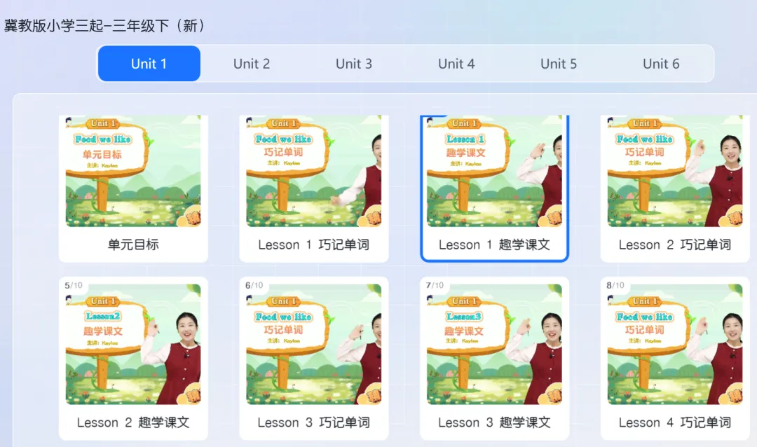 除了启蒙资源,APP 还包含原版英语教材,完美匹配校内学习进度。孩子可以在 APP 上预习新课、复习旧知,每一个章节都有对应的章节提升训练,针对性巩固课堂所学知识点。家长不用再额外购买教辅资料,打开 APP 就能帮孩子检验学习效果,抓牢基础分。