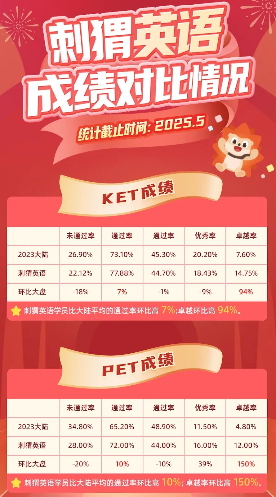 我了解到,刺猬英语的学员在KET、PET考试中的通过率接近80%,远高于行业平均水平,能有这么优秀的成绩,足以看出其实力的不俗。