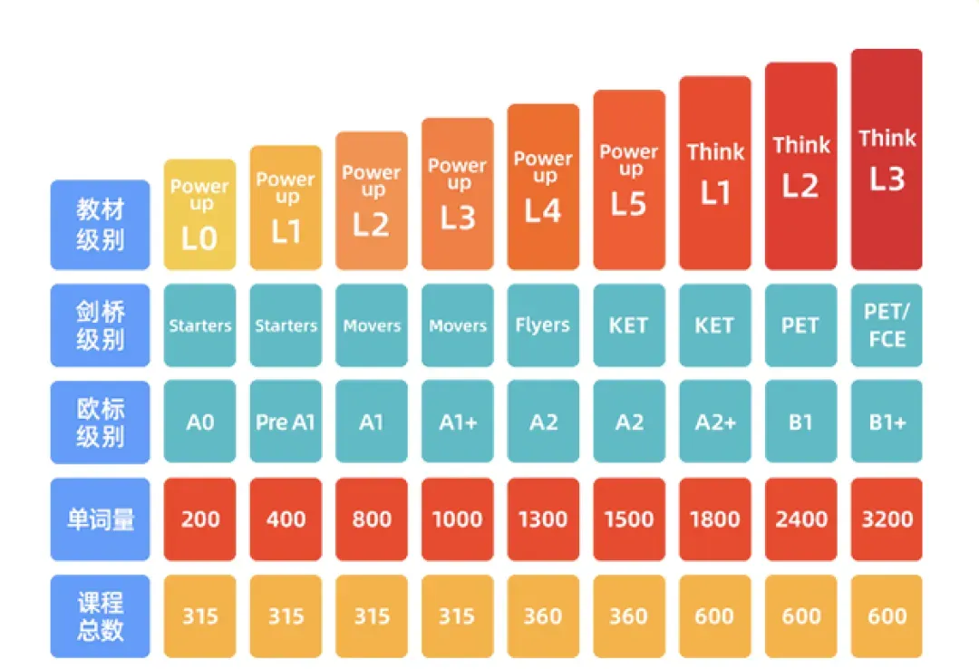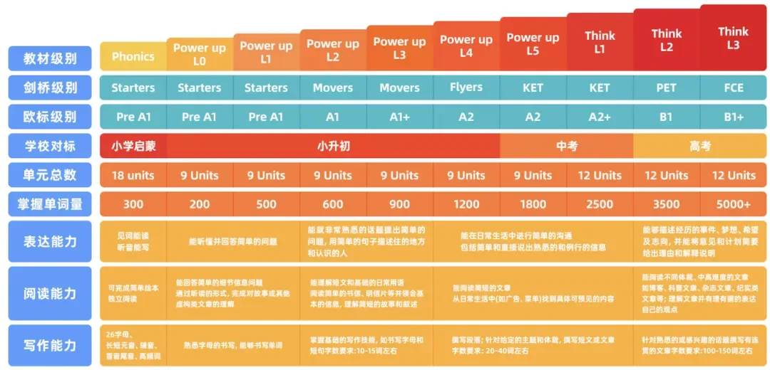 从零基础的Power Up启蒙教材开始,孩子可以一步步向上搞定英语: