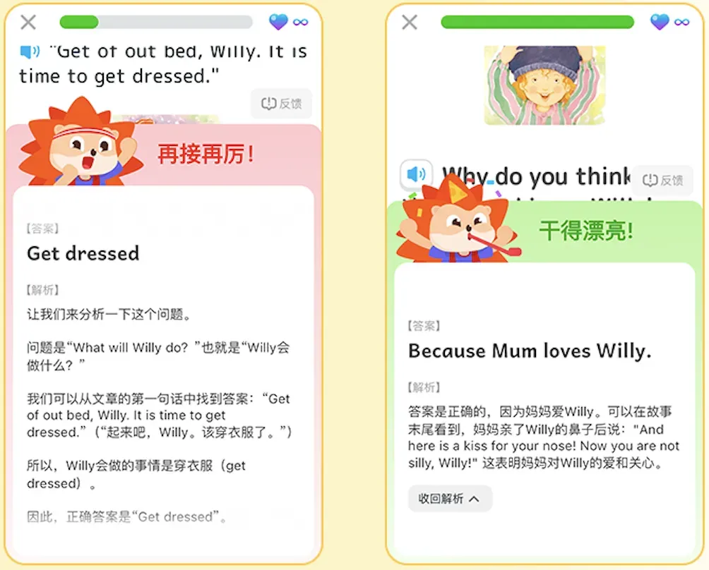 很多课程只给孩子一个标准答案,孩子错了也不知道为什么,下次可能还会在相同的地方摔跟头。