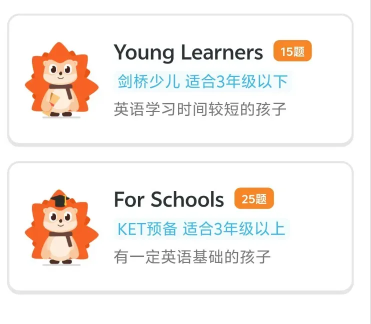 我之所以给大家推荐刺猬英语,有一点非常重要,就是它有着完善的对标“剑桥系”考试的学习体系。