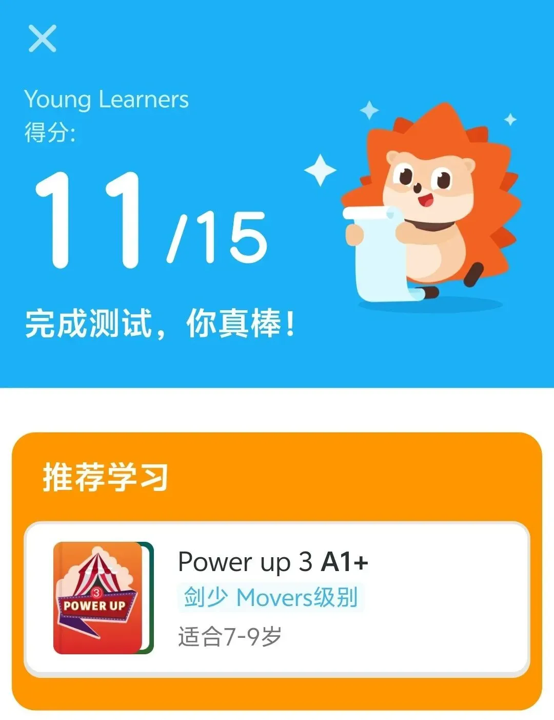刺猬英语所用的,是剑桥体系的权威教材——《POWER UP》和《THINK》,可以真正实现考学结合。