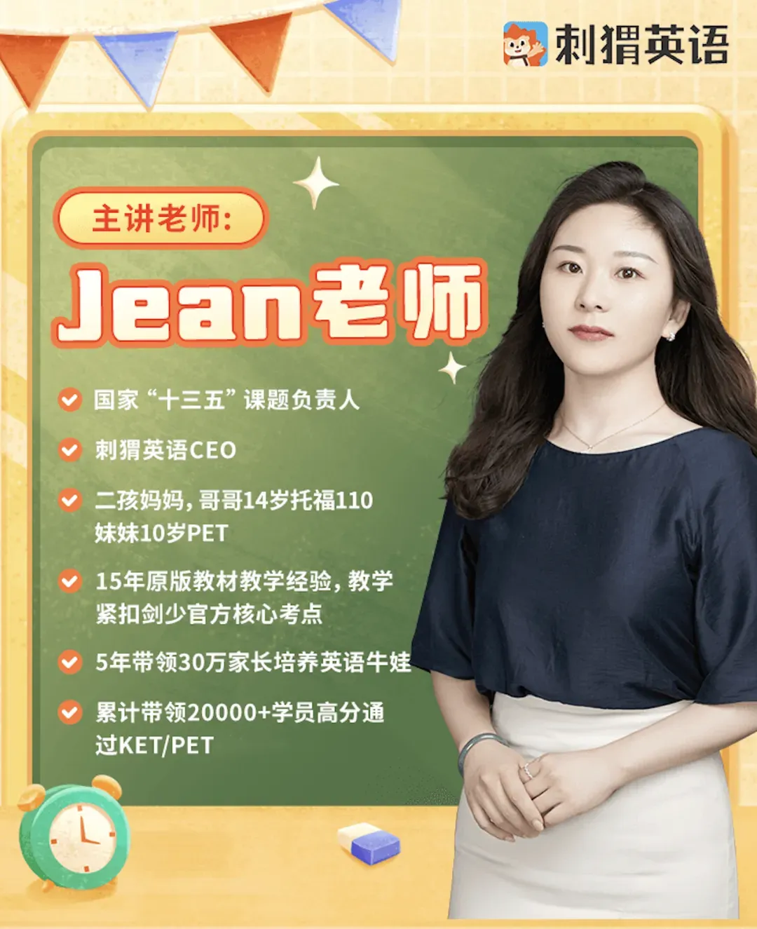 Jean老师拥有5年的海外私立小学教学经验,15年原版教材教研经验,再结合前沿的AI大模型技术,让许多传统教学中的“不可能”变成了现实。