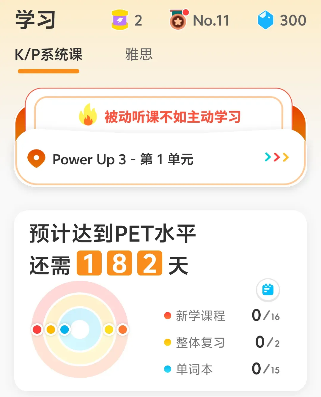 APP会根据孩子的实际英语水平及备考时间,量身定制专属学习计划,把任务精准拆解到每一天。