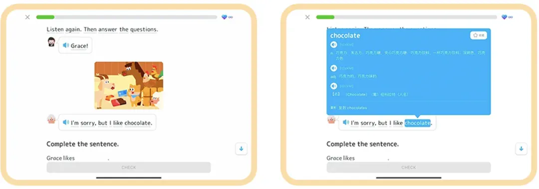 小灶课程配有划词功能,孩子在阅读中遇到任何生词,轻轻一点即可查询释义,高效积累词汇。
