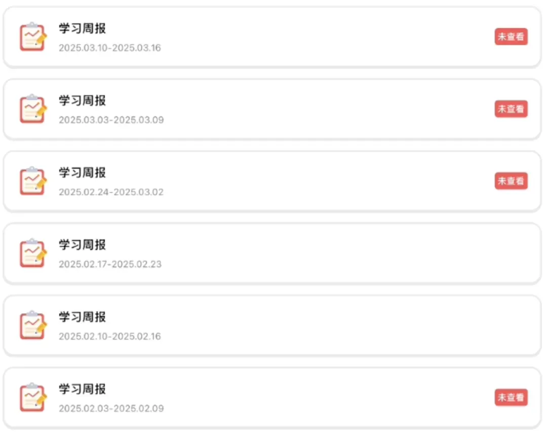 除此之外,系统还会生成每周和每月学习报告——总结孩子的学习内容、薄弱环节,梳理他们的进步和需要改进的地方。