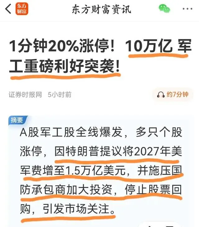 原来是美国军工行业的事情,这同中国军工行业的利好相关吗?我期初以为中央给了军工行业什么特大政策利好了。唉,这就是咱们机构和媒体的水平啊,把股民当小孩子玩,可我们有些散户还真当成利好了。其实关于军工行业的利好,还是我前几天分析两个军工股是说的那些长期利好:行业景气周期依然存在,解放军军工装备迭代升级加快和军贸生意很好。