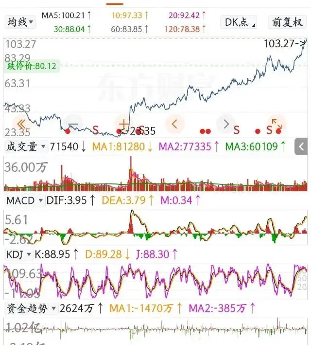 我又看了一下该公司的股价走势,从20多块涨到了103块附近了,这么大涨幅的股票也敢给