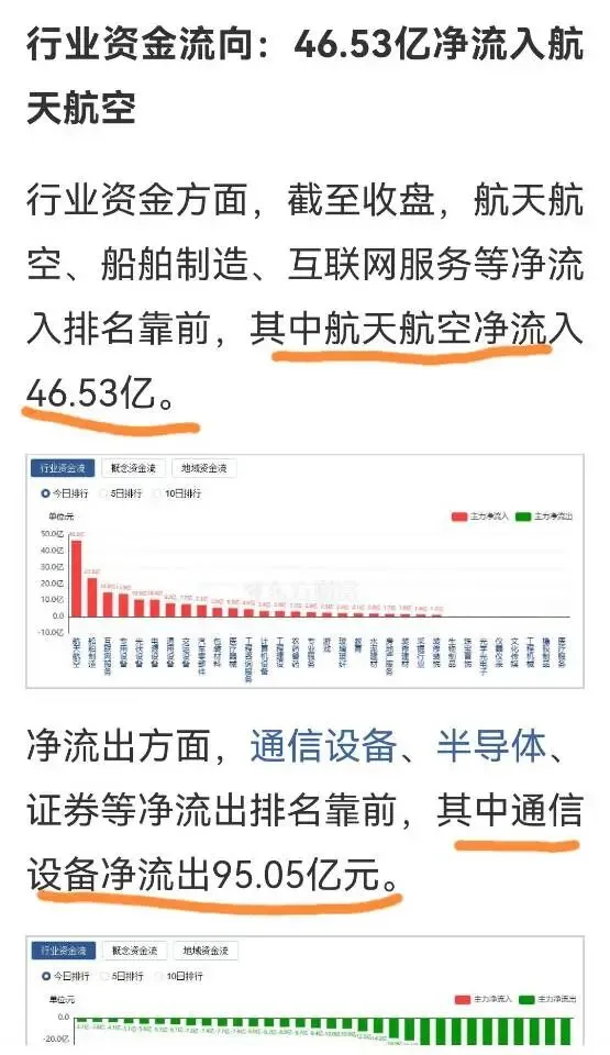 这其中军工行业资金流进主要还是央企控股的那几只大票的资金流进为主。我发现低位的军工股,去年整个一年都没有怎么涨。资金都有从高位票兑现利润,去寻找有确定性的低位行业和公司的天然倾向。所以,估计这个除了商业航天概念之外的航天军工行业应该有一波行情的。我自己认为可以根据走势观察,反复去做。