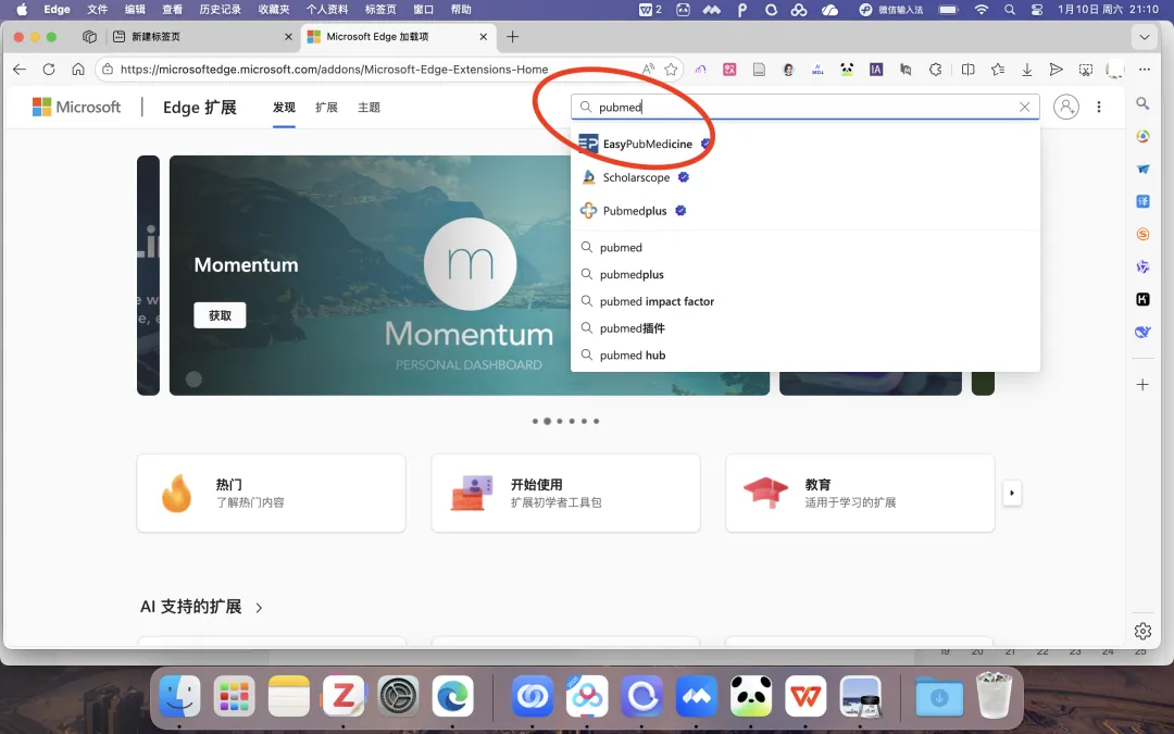 Pubmed 影响因子显示插件 ❓如何在Pubmed 网址检索的文章下方出现影响因子IF,需要借助影响因子显示插件。 ✨✨🌟推荐使用微软 edge 浏览器(个人感受:简洁,重要的信息优先显示,bing 广告相对少) 微软 edge 浏览器插件安装步骤,囊括了大部分 pubmed 插件 第1️⃣步:点击浏览器扩展 第2️⃣步:搜索框内检索“pubmed” 第3️⃣步:选择一个自己喜欢的插件,点击获取,自动安装。 第4️⃣步:自动安装,点击大头针,锁定在工具栏内。 第5️⃣步:效果展示 麋鹿医学,医学不迷路