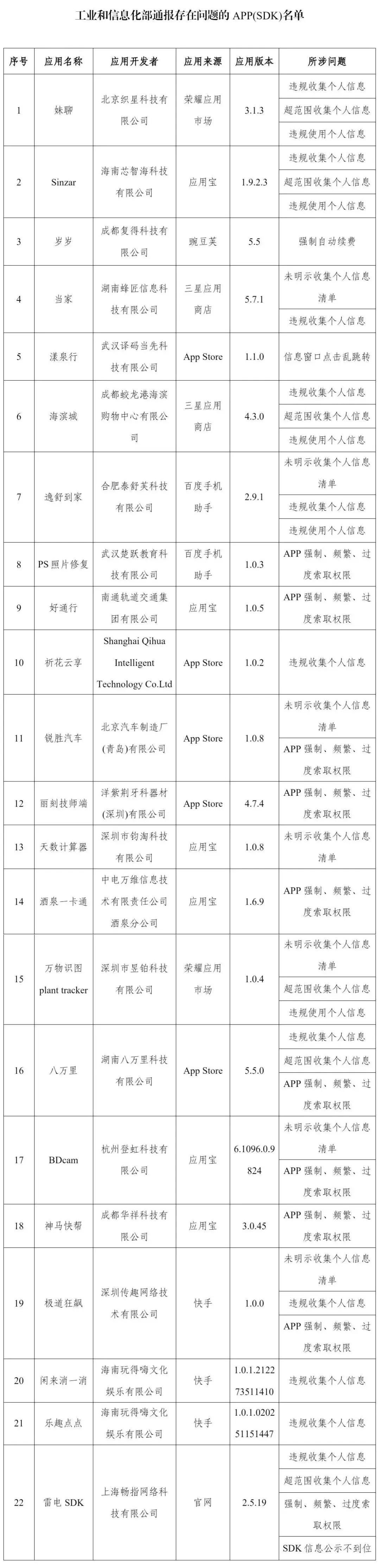 据悉,上述App及SDK应按有关规定进行整改,整改落实不到位的,工业和信息化部将依法依规组织开展相关处置工作。