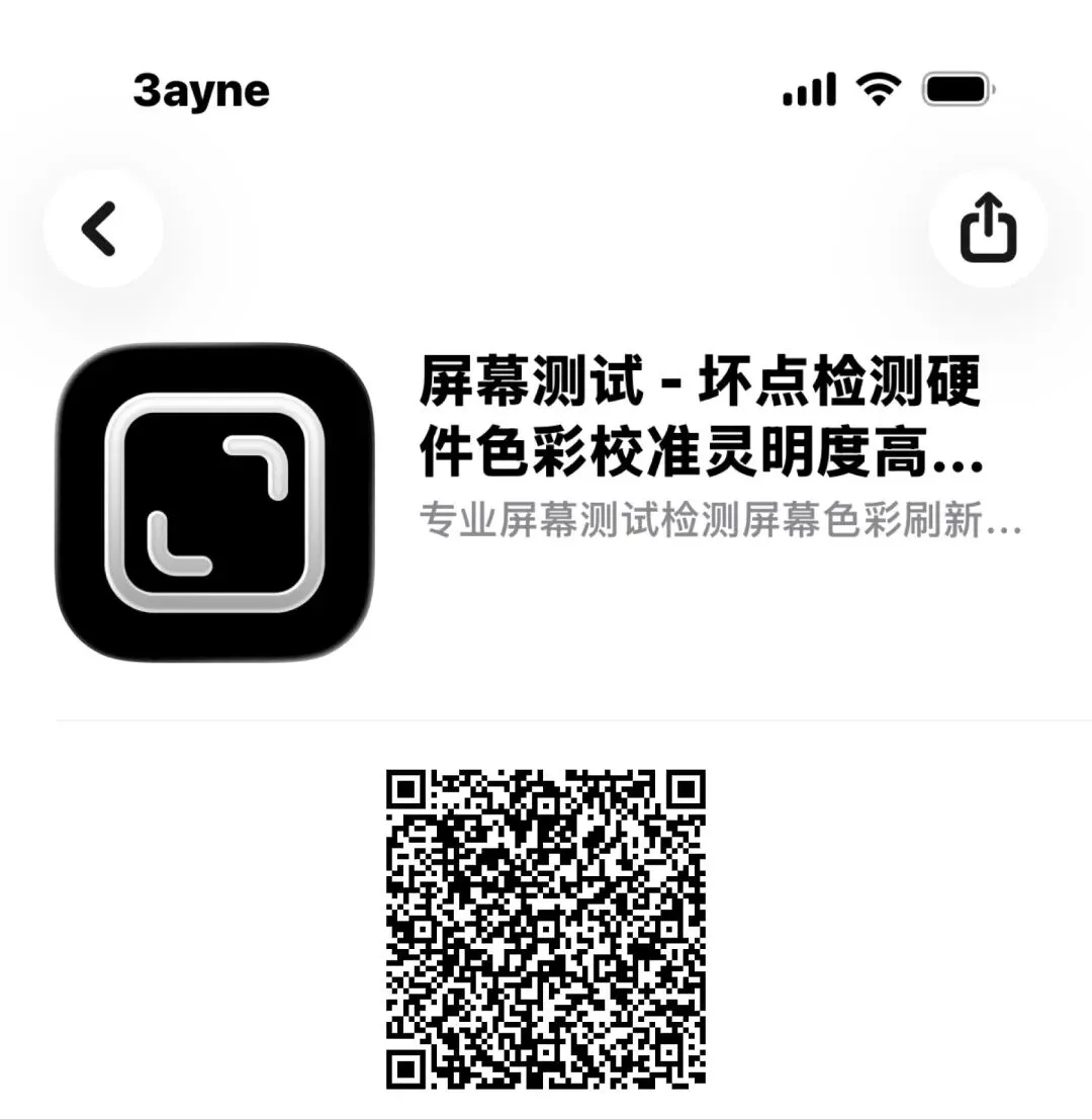 应用描述:纯色测试 / 渐变色测试 / 单点触控测试 / 多点触控测试 / 坏点检测 / 频闪测试 / 亮度检测 / 刷新率检测 / 分辨率检测 9 大检测,无广告无内购,无网络飞行模式也能用,隐私安全 100%。iPhone/iPad 屏幕质量一键排查!