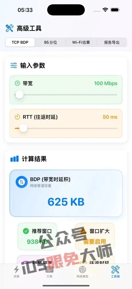 【带宽计算器】一款网络工程师与系统管理员的专业工具。提供网络带宽计算、传输时间估算、协议开销分析等功能,适用于网络规划、故障排查与性能优化。