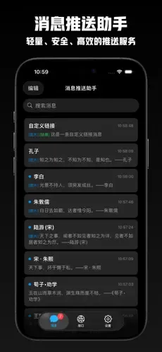 14、消息推送助手 ![]() 限免:应用限免|¥12→0 系统:iOS 16.0 推荐指数:⭐⭐⭐ 介绍: 一款专为开发者和运营者设计的轻量级推送工具。它允许你通过简单的HTTP请求,向iPhone、iPad或Mac设备发送高度可定制的通知消息,支持自定义标题、内容、图标、链接等,并能提供实时的送达反馈与失败原因分析,是进行App功能测试或运营消息触达的高效助手。 ![]() ![]() ![]() 长按二维码 识别下载 |