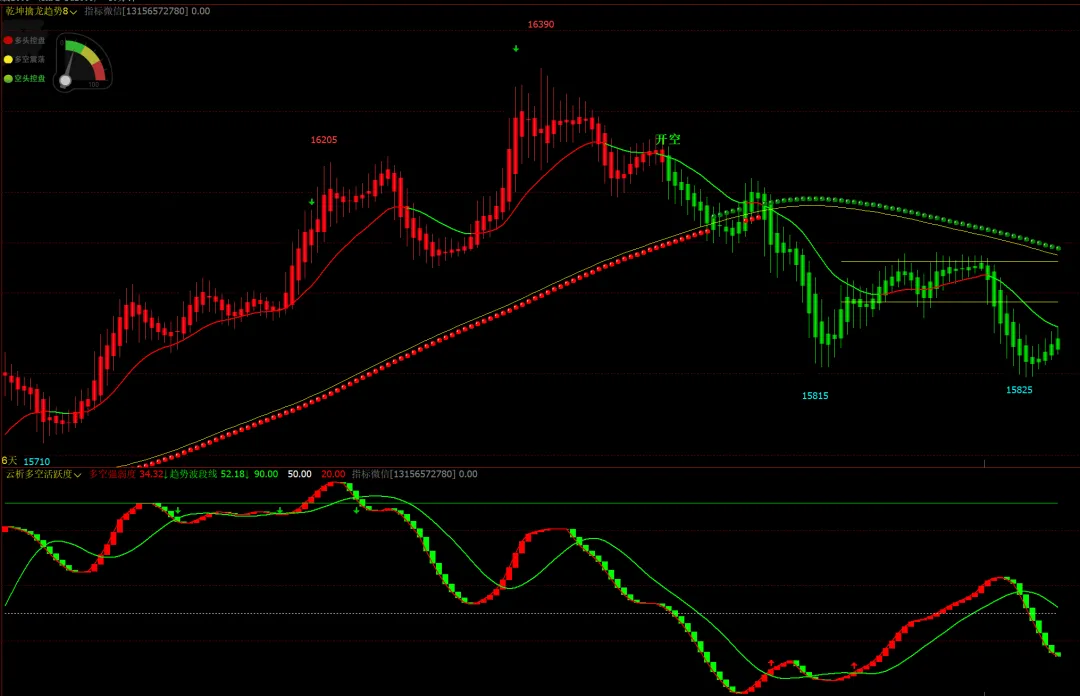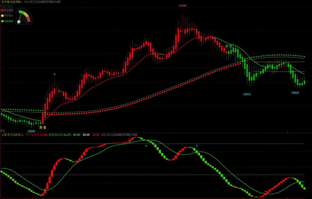 1、乾坤擒龙趋势主图+云析多空活跃度幅图,无未来函数,当前信号一旦确认后,不消失,不漂移!