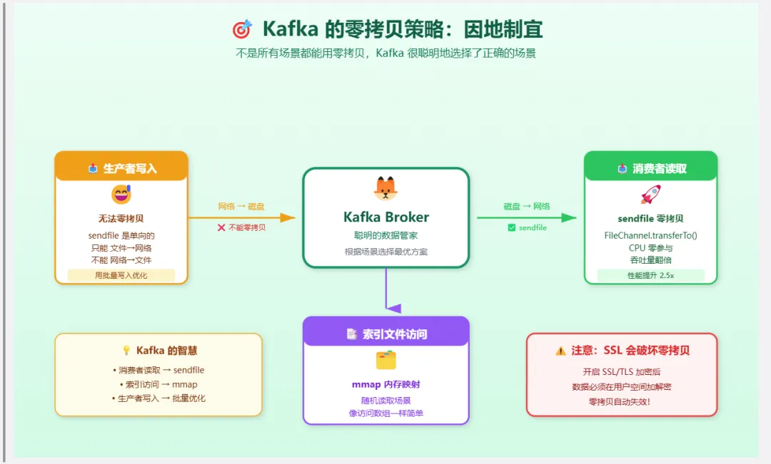 理解了这些,你就明白了为什么零拷贝不是银弹——它只适合特定场景。而 Kafka 的聪明之处,就在于它精准地识别了这些场景,并在正确的地方使用了正确的技术。