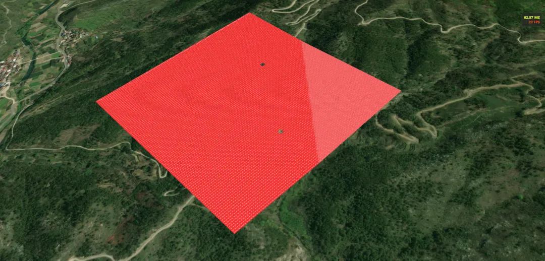 <template><divid="cesiumContainer"class="cesium-container"></div></template><scriptsetup>import { onMounted, onUnmounted, ref } from 'vue';import * as Cesium from 'cesium';Cesium.Ion.defaultAccessToken = 'eyJhbGciOiJIUzI1NiIsInR5cCI6IkpXVCJ9.eyJqdGkiOiIxZjhjYjhkYS1jMzA1LTQ1MTEtYWE1Mi0zODc5NDljOGVkMDYiLCJpZCI6MTAzNjEsInNjb3BlcyI6WyJhc2wiLCJhc3IiLCJhc3ciLCJnYyJdLCJpYXQiOjE1NzA2MDY5ODV9.X7tj92tunUvx6PkDpj3LFsMVBs_SBYyKbIL_G9xKESA';// 声明Cesium Viewer实例let viewer = null;// 组件挂载后初始化CesiumonMounted(async () => {initMap();});const initMap = async () => {// 初始化Cesium Viewerviewer = new Cesium.Viewer('cesiumContainer', {// 基础配置animation: false, // 动画小部件baseLayerPicker: false, // 底图选择器fullscreenButton: false, // 全屏按钮vrButton: false, // VR按钮geocoder: false, // 地理编码搜索框homeButton: false, // 主页按钮infoBox: false, // 信息框 - 禁用点击弹窗sceneModePicker: false, // 场景模式选择器selectionIndicator: false, // 选择指示器timeline: false, // 时间轴navigationHelpButton: false, // 导航帮助按钮navigationInstructionsInitiallyVisible: false, // 导航说明初始可见性scene3DOnly: false, // 仅3D场景// terrain: Cesium.Terrain.fromWorldTerrain(), // 使用世界地形});// 隐藏logoviewer.cesiumWidget.creditContainer.style.display = "none";viewer.scene.globe.enableLighting = false;// 禁用大气层和太阳viewer.scene.skyAtmosphere.show = false;//前提先把场景上的图层全部移除或者隐藏// viewer.scene.globe.baseColor = Cesium.Color.BLACK; //修改地图蓝色背景viewer.scene.globe.baseColor = new Cesium.Color(0.0, 0.1, 0.2, 1.0); //修改地图为暗蓝色背景// 设置抗锯齿viewer.scene.postProcessStages.fxaa.enabled = true;// 清除默认底图viewer.imageryLayers.remove(viewer.imageryLayers.get(0));// 加载底图 - 使用更暗的地图服务const imageryProvider = await Cesium.ArcGisMapServerImageryProvider.fromUrl("https://services.arcgisonline.com/ArcGIS/rest/services/World_Imagery/MapServer");viewer.imageryLayers.addImageryProvider(imageryProvider);viewer.scene.debugShowFramesPerSecond = true;viewer.scene.globe.depthTestAgainstTerrain = true;// viewer.terrainProvider = new Cesium.CesiumTerrainProvider({// url: '//data.mars3d.cn/terrain'// });const terrainProvider = await Cesium.CesiumTerrainProvider.fromIonAssetId(3956);viewer.terrainProvider = terrainProvider;viewer.camera.flyTo({destination: Cesium.Cartesian3.fromDegrees(114.20597076416016,31.15141366186558, 5000.0)});//坡向分析class falling {constructor(viewer, config) {this.viewer = viewer;this.config = config;this.loadResult();}loadResult() {let _this = this;const startx1 = _this.config.positons[0];const starty1 = _this.config.positons[1];const startx2 = _this.config.positons[2];const starty2 = _this.config.positons[3];const startx3 = _this.config.positons[4];const starty3 = _this.config.positons[5];const startx4 = _this.config.positons[6];const starty4 = _this.config.positons[7];//坡向显示function analysis(startx1, starty1, startz1, startx2, starty2, startz2, startx3, starty3, startz3, startx4, starty4, startz4) {//高度z全为0const count = 100;let slopelineposition = [];let hireacys = [];let hireacysdistance = []for (let j = 0; j < 100; j++) {for (let i = 0; i < 100; i++) {let hireacy = [];//分割成小面,切分经纬度hireacy.push(new Cesium.Cartesian3(startx1 + (startx2 - startx1) / count * i + (startx4 + (startx3 - startx4) / count * (i) - startx1 - (startx2 - startx1) / count * i) / count * j,starty1 + (starty2 - starty1) / count * i + (starty4 + (starty3 - starty4) / count * (i) - starty1 - (starty2 - starty1) / count * i) / count * j,startz1 + (startz2 - startz1) / count * i + (startz4 + (startz3 - startz4) / count * (i) - startz1 - (startz2 - startz1) / count * i) / count * j))hireacy.push(new Cesium.Cartesian3(startx1 + (startx2 - startx1) / count * (i + 1) + (startx4 + (startx3 - startx4) / count * (i + 1) - startx1 - (startx2 - startx1) / count * (i + 1)) / count * j,starty1 + (starty2 - starty1) / count * (i + 1) + (starty4 + (starty3 - starty4) / count * (i + 1) - starty1 - (starty2 - starty1) / count * (i + 1)) / count * j,startz1 + (startz2 - startz1) / count * (i + 1) + (startz4 + (startz3 - startz4) / count * (i + 1) - startz1 - (startz2 - startz1) / count * (i + 1)) / count * j))hireacy.push(new Cesium.Cartesian3(startx4 + (startx3 - startx4) / count * (i + 1) - (startx4 + (startx3 - startx4) / count * (i + 1) - startx1 - (startx2 - startx1) / count * (i + 1)) / count * (count - 1 - j),starty4 + (starty3 - starty4) / count * (i + 1) - (starty4 + (starty3 - starty4) / count * (i + 1) - starty1 - (starty2 - starty1) / count * (i + 1)) / count * (count - 1 - j),startz4 + (startz3 - startz4) / count * (i + 1) - (startz4 + (startz3 - startz4) / count * (i + 1) - startz1 - (startz2 - startz1) / count * (i + 1)) / count * (count - 1 - j)))hireacy.push(new Cesium.Cartesian3(startx4 + (startx3 - startx4) / count * i - (startx4 + (startx3 - startx4) / count * (i) - startx1 - (startx2 - startx1) / count * i) / count * (count - 1 - j),starty4 + (starty3 - starty4) / count * i - (starty4 + (starty3 - starty4) / count * (i) - starty1 - (starty2 - starty1) / count * i) / count * (count - 1 - j),startz4 + (startz3 - startz4) / count * i - (startz4 + (startz3 - startz4) / count * (i) - startz1 - (startz2 - startz1) / count * i) / count * (count - 1 - j)))hireacys.push(hireacy);//取出面的8个点坐标,拿点坐标去求高度值slopelineposition.push(Cesium.Cartographic.fromDegrees(hireacy[0].x, hireacy[0].y));slopelineposition.push(Cesium.Cartographic.fromDegrees((hireacy[0].x + hireacy[1].x) / 2, (hireacy[0].y + hireacy[1].y) / 2));slopelineposition.push(Cesium.Cartographic.fromDegrees(hireacy[1].x, hireacy[1].y));slopelineposition.push(Cesium.Cartographic.fromDegrees((hireacy[1].x + hireacy[2].x) / 2, (hireacy[1].y + hireacy[2].y) / 2));slopelineposition.push(Cesium.Cartographic.fromDe