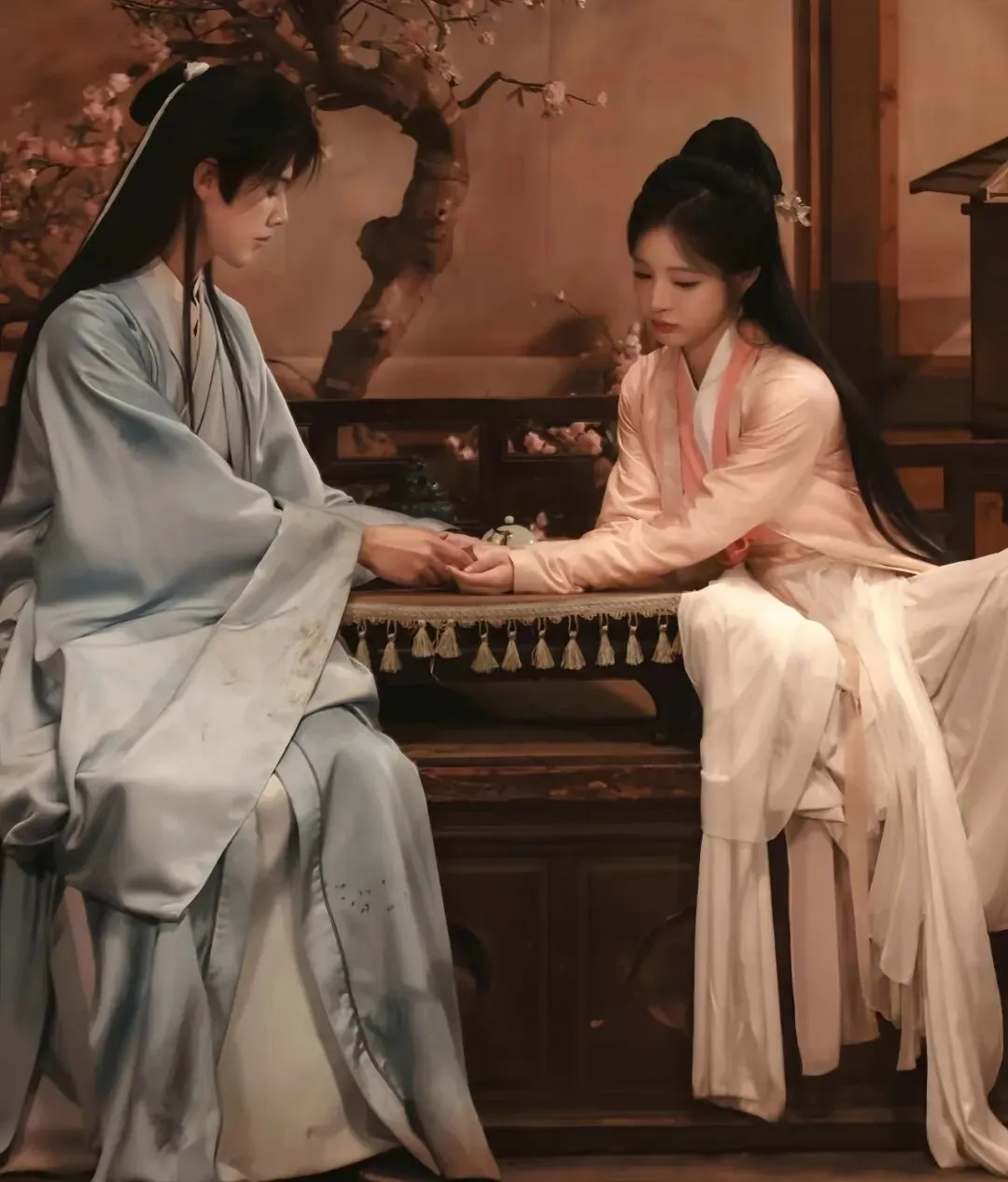 回忆里男女主很甜蜜,女主喜欢看话本,男主就故作不经意陪她一起看。