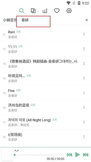 4、可以搜索歌曲或歌手或专辑,快速找到喜欢的音乐;