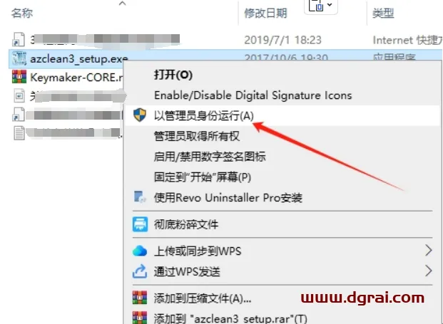 2、选择“azclean3_setup.exe”鼠标右键以管理员身份运行